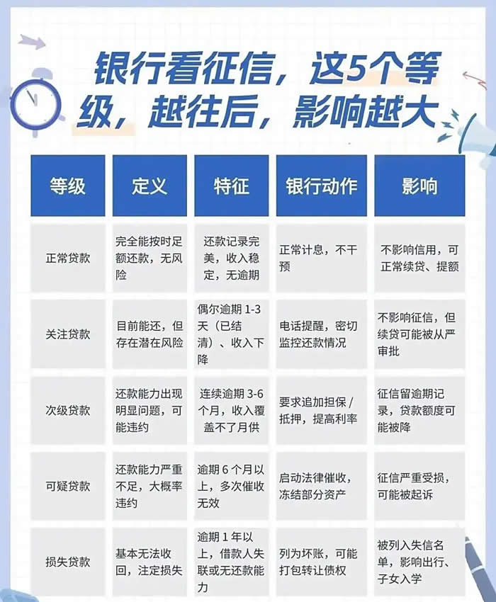 别觉得“短期逾期、小额欠款”不严重——哪怕逾期1天,也可能被划入“关注贷款”;一旦逾期超90天,直接进入“次级”,成为不良贷款。之后再想申请信用卡、房贷、车贷,大概率会被银行拒之门外。