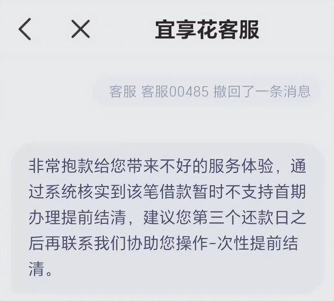 更令他震惊的是,这笔“被贷款”的年利率高达23.99%,总利息超过1.3万元。当他要求立即还款时,客服却称:“暂时不支持首期提前结清,需等到第三个还款日后才能申请。”