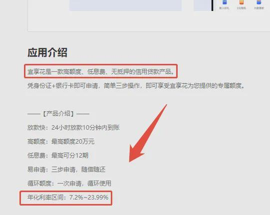 陷阱一:低息幌子下的高息真相。宜享花在广告中宣称提供“年利率7.2%-23.99%”的低息贷款。但当用户真正借款后,却发现综合借贷成本最高可达35.9%。