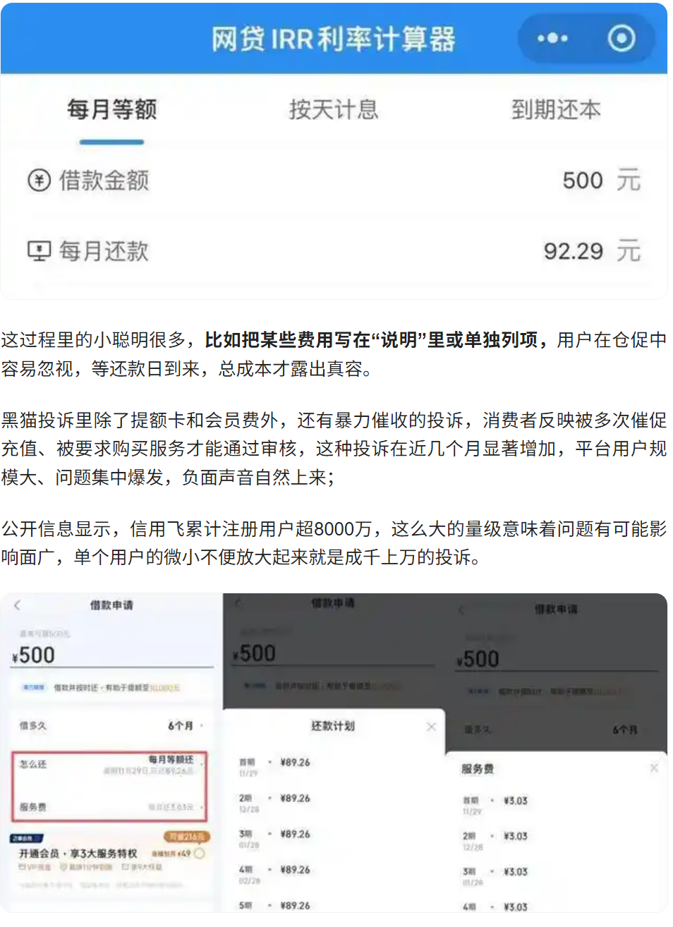 但我在信用飞的实际体验里,平台并没有把所有费用合并到明显的综合年化展示里,表面合规与实际承担之间存在差距,这种差距使得监管意图与市场实际操作出现错位。
