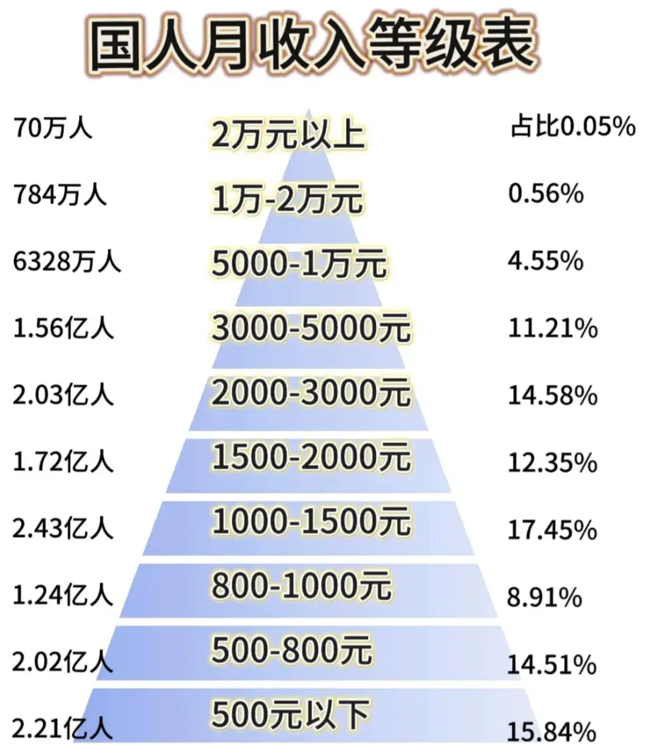 实际上真正月收入超一万以上的人不足0.7%