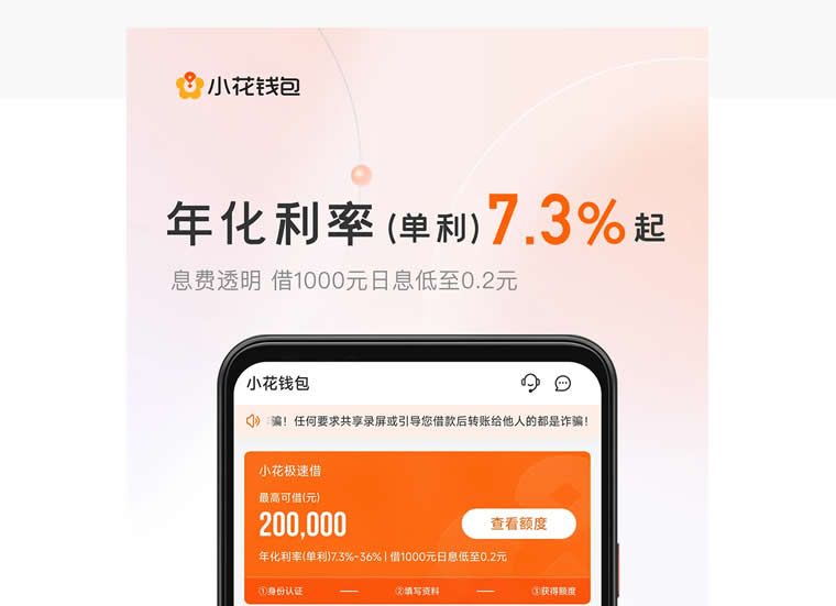 “小花钱包app”是小花网络(全名:小花网络科技(深圳)有限公司)专为年轻群体提供的线上信贷服务平台。该平台通过生物特征识别技术结合大数据信用评级,实现30秒审批、60秒放款的快速服务模式。产品功能覆盖现金借款、信用卡代偿及分期购物,可申请的最高额度是10万,资金来源于持牌金融机构。全国地区的客户都是可以申请。