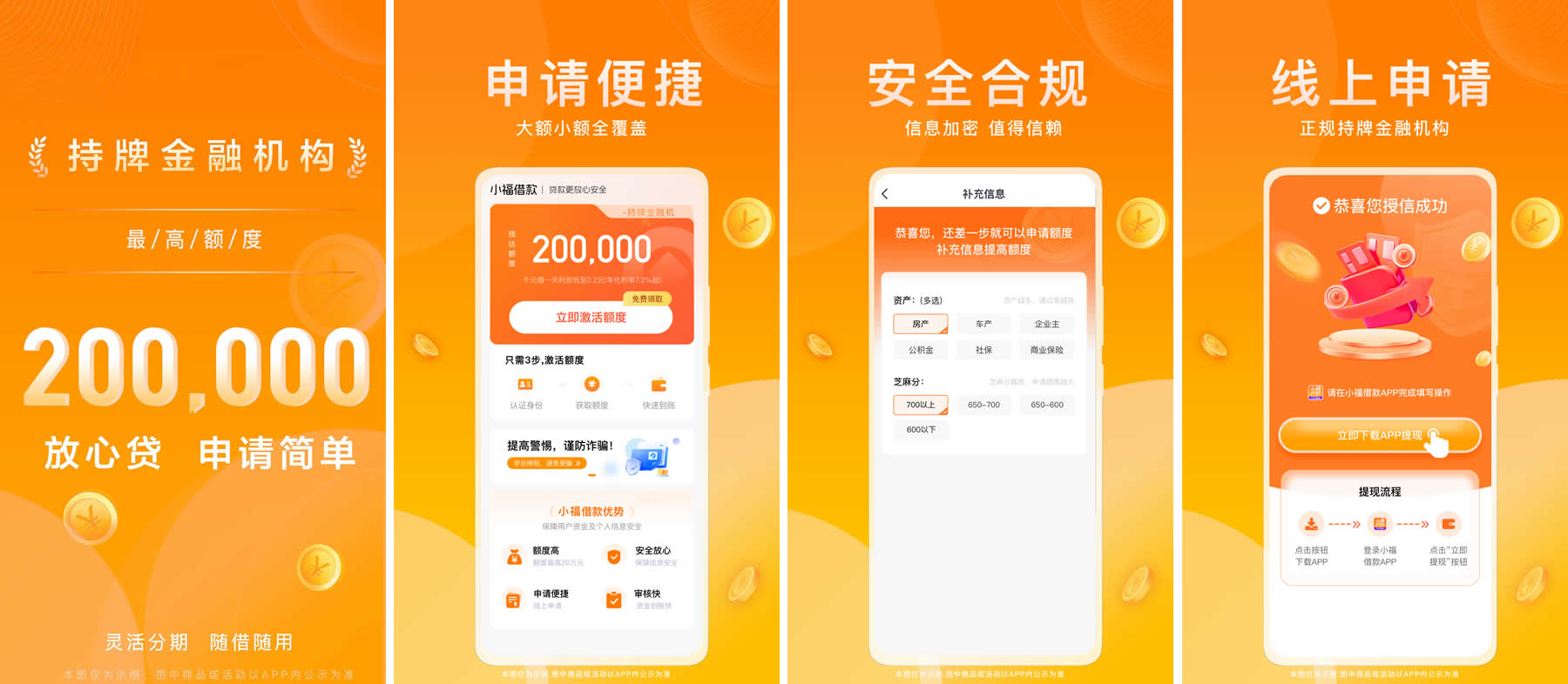 2. 申请:选额度/期限,可选传支付流水