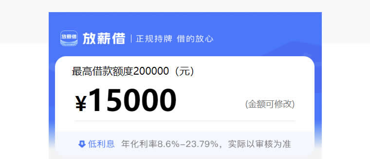 | 产品名称 | 放薪借 | 贷款利率 | 36.00%起 |