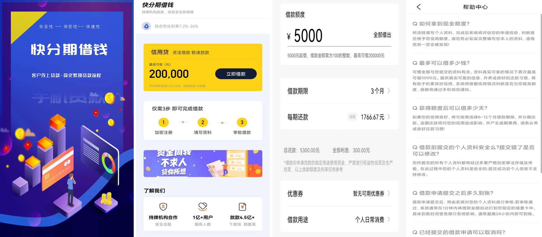 快分期借钱,是(湖南中天宏博信息科技有限公司)提供的一款个人信贷产品,利用人工智能和大数据风控技术,为用户提供方便、快捷、安全的的金融信贷服务。