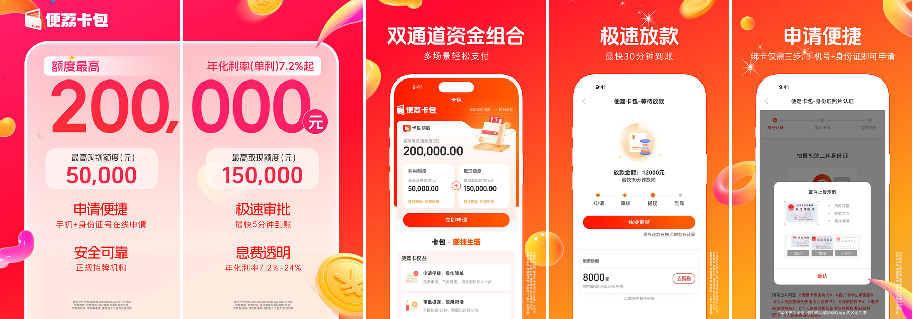 便荔卡包app是由北京自牧云创科技有限公司鹰潭市信江广达小额贷款股份有限公司联合推出的一款金融产品。平台与多家持牌合规的第三方金融机构合作,专为用户提供灵活、透明的金融分期服务。最高可享受8万组合额度(以实际审批为准),应急周转多场景无缝切换,资金调配尽在掌握。便荔卡包致力于为用户提供便捷、安全的金融解决方案,帮助用户实现资金灵活周转。
