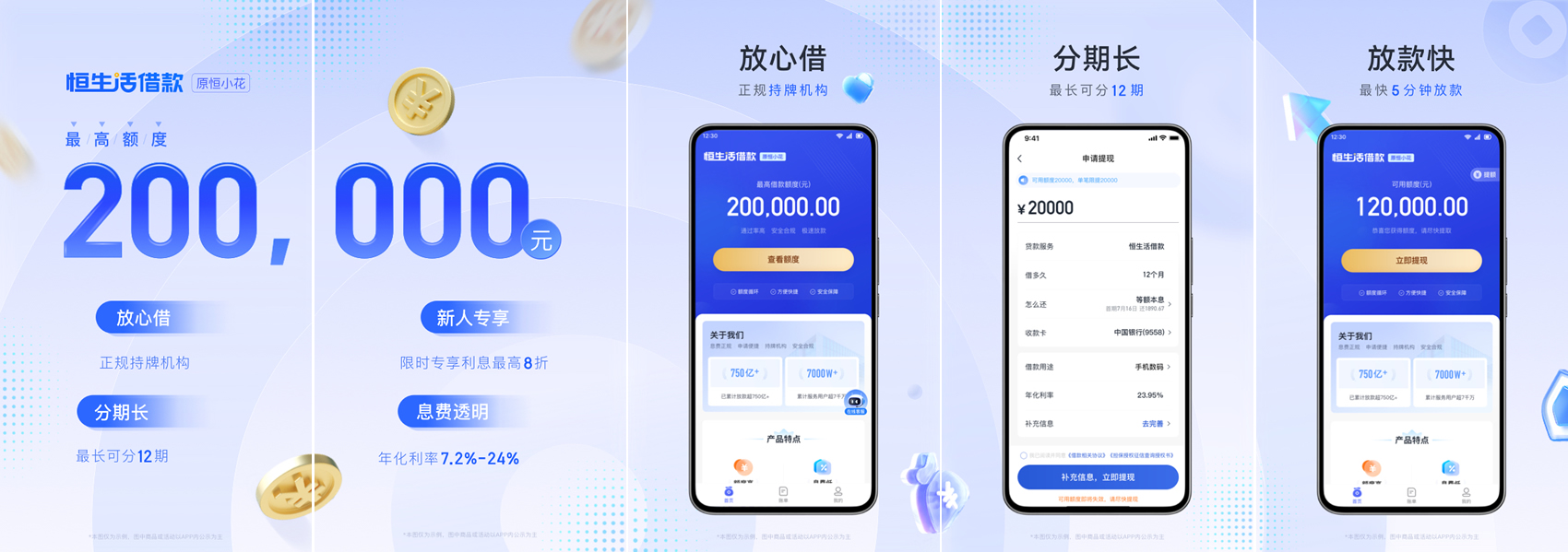 恒生活借款(原恒小花),是(北京乐享无限科技有限公司)提供的一款高额、低息、无抵押、可循环的信用借款产品,至高额度20万元;更懂年轻人消费需求的服务平台,以“简单生活随心花”为理念,为您提供灵活的消费分期服务、贴心便捷的分期购物服务,让您随时随地享受品质生活。