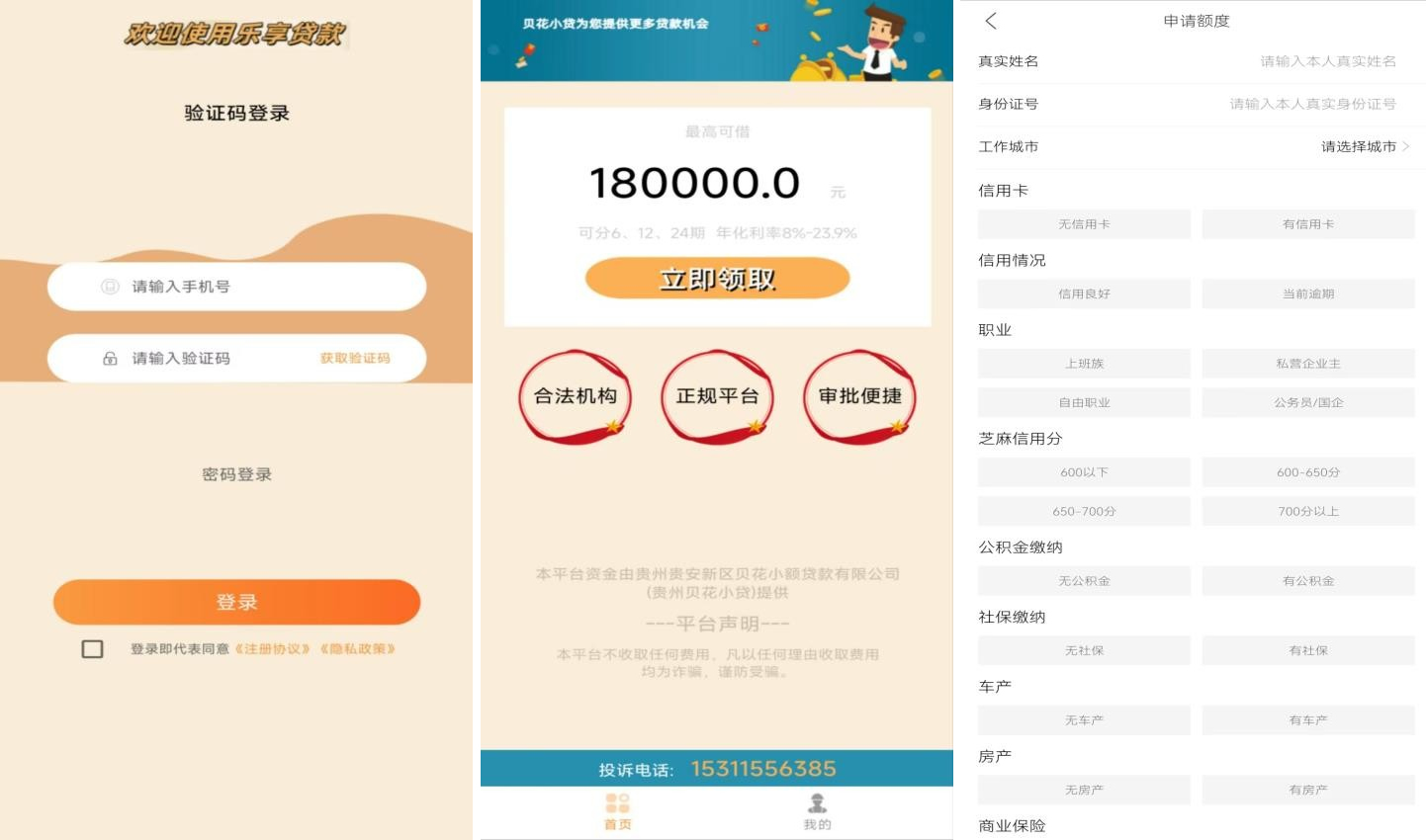 贝花小贷 "乐享贷款借钱花",最高额度18万