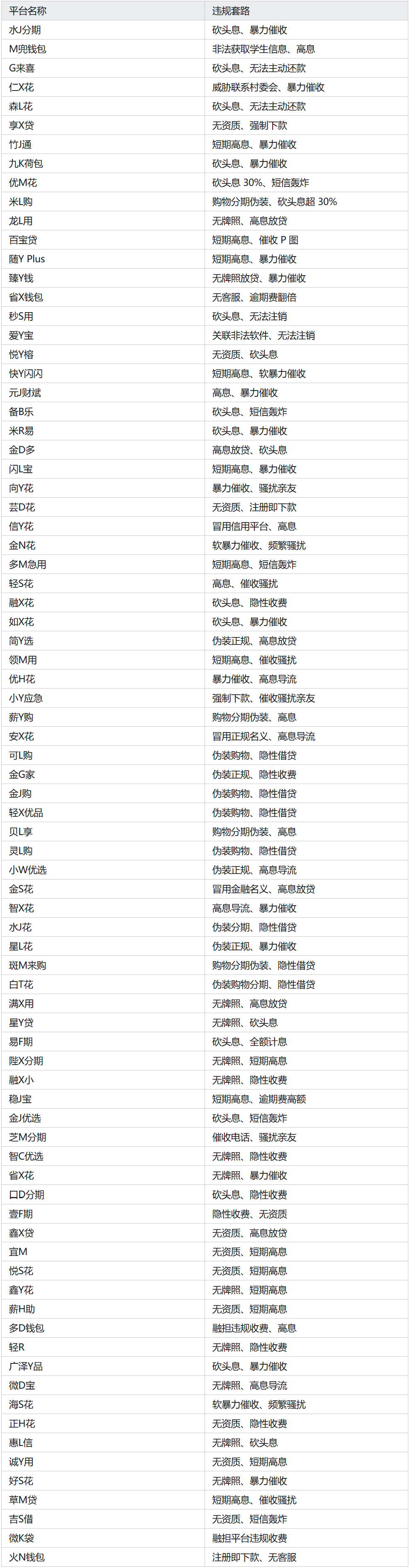 说明:以下平台均涉无牌照放贷、强制下款、砍头息、暴力催收等违规行为,测算年化利率远超法定保护上限(约 14.8%),风险极高!