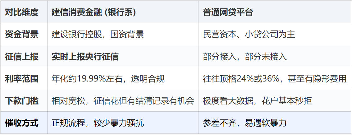 建信消费金融与网贷产品对比