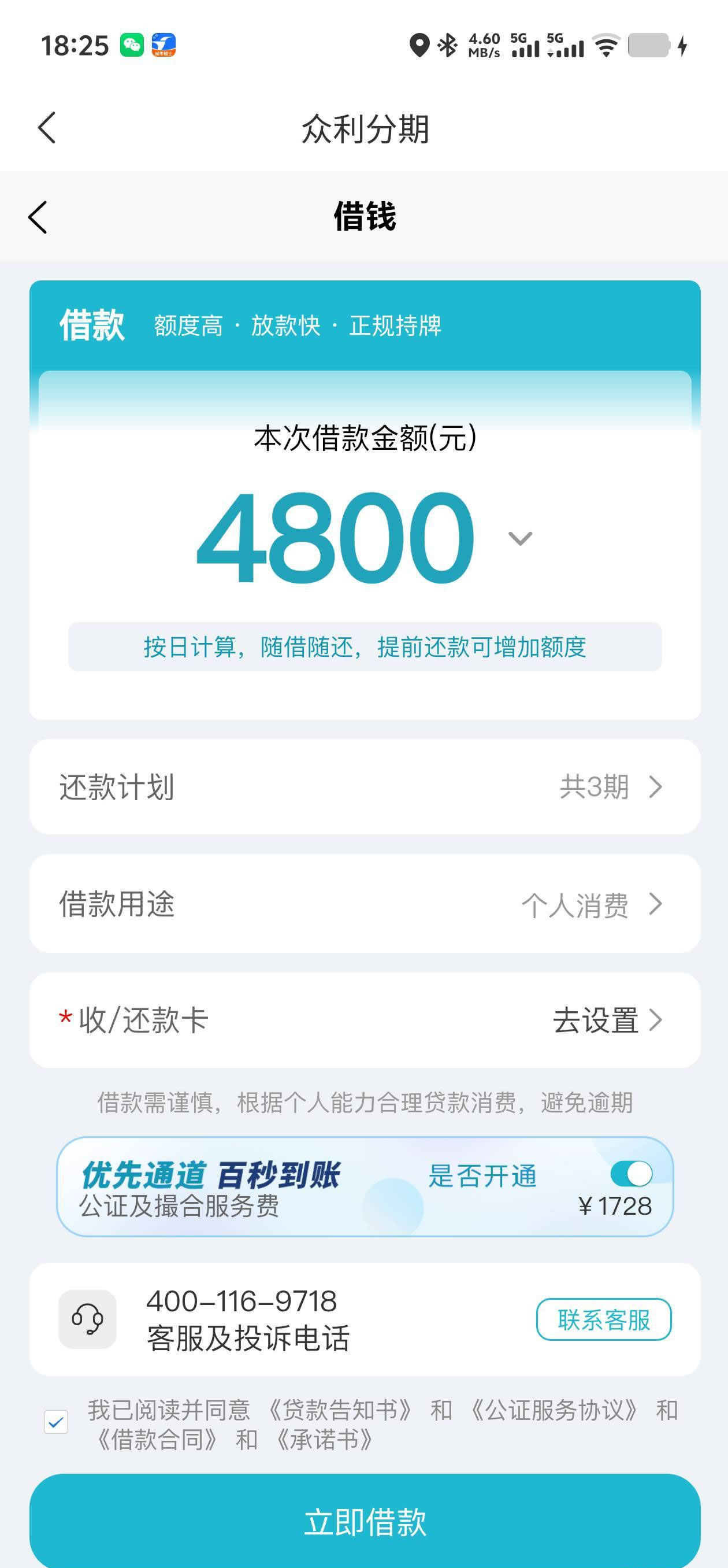 众利分期 比抢还狠,借4800,会员费要1728