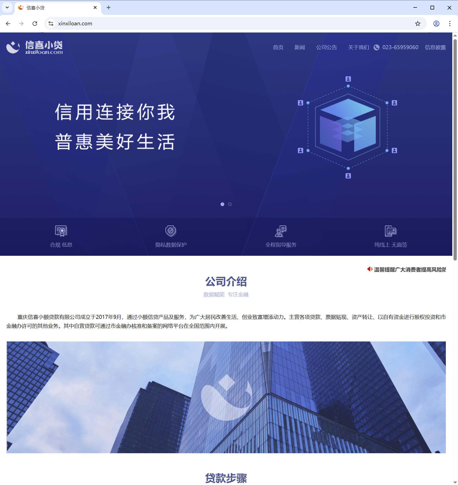 官网提供贷款申请流程说明、信息披露、隐私保护政策等内容,具备合规性公示功能。