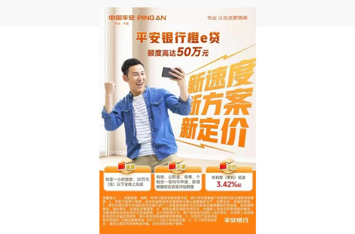 橙e贷平安银行(全称“平安银行股份有限公司”)提供的一款信用贷款产品,线上申请,无需抵押担保,放款时效快。