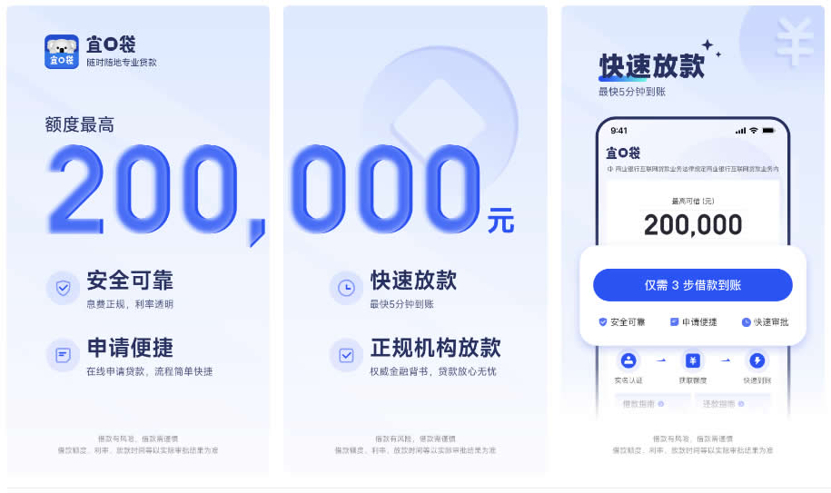 宜口贷app借款是(全称:营口聚辉网络科技有限公司)提供的专为解决个人短期资金周转难题而打造,分期借钱信贷产品,贷款额度至高可达20万,随借随还,循环使用,满足您的借款需求,手机申请,无需抵押,期数灵活,简单快捷,借钱更省心,审核时间短,到账时间5分钟起。多种提额和权益组合方式,助您轻松提升贷款额度,账户安全,信息加密,借款更放心贷款额度、放款时间、贷款利率等以实际审批为准。