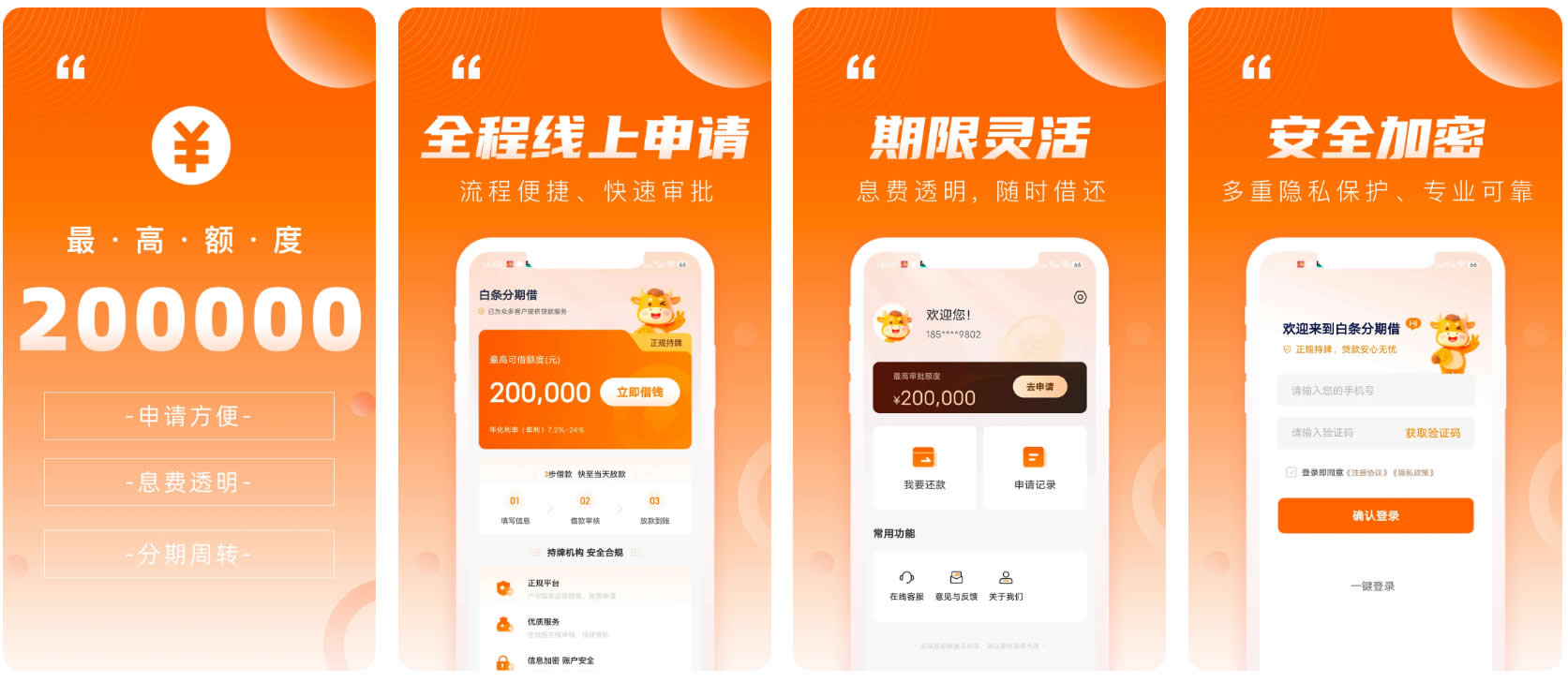白条分期借是(全称:哈尔滨市晟融小额贷款有限责任公司)提供的一款专为年轻人打造的在线借钱贷款服务app,在线申请现金分期借款服务,期限灵活,用手机即可申请,操作流程简单明了,可以清楚查看借款还款进度,降低你的临时经济压力。