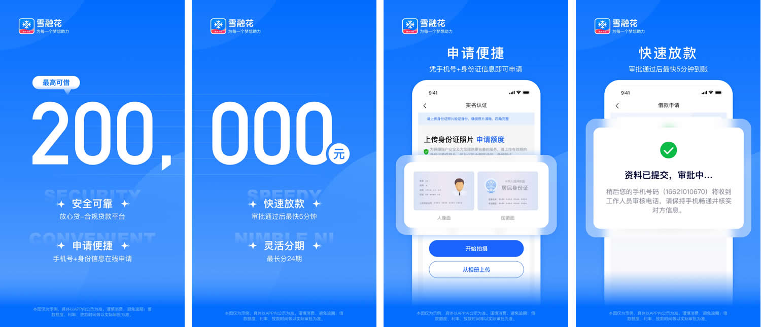 雪融花app暴风雪(全称:苏州暴风雪网络科技有限公司)提供的一款专为普通白领族、工薪族、工商企业主打造的智慧融资服务平台,为用户提供安全、合规、放心的信息咨询服务,帮助用户解决资金周转问题。雪融花为您精选线下持牌合规金融机构,为您一对一提供定制化的债务规划方案,帮助您合理安排还款计划,减轻还款压力。