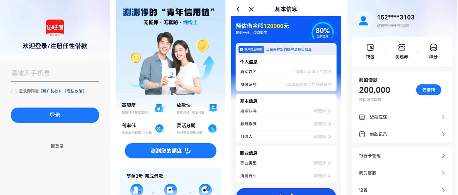 4、申请门槛低:23-55周岁非在校大学生人群凭手机号和身份信息等就可以申请!