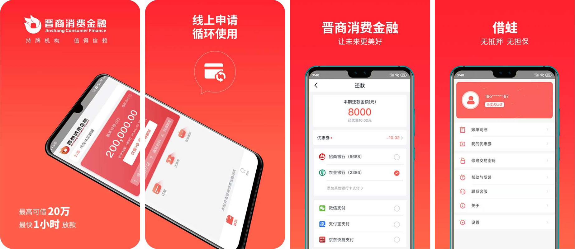 晋商消费金融,是(晋商消费金融股份有限公司)提供的一款凭身份证即可在线申请贷款的手机借钱APP!额度高、利率低、0费用!由持牌机构晋商消费金融股份有限公司提供。晋商消费金融是中国银保监会批准成立的全国性持牌消费金融公司。“借蛙”为您提供银行级安全、随用随取、专业、智能、便捷的在线借款服务。