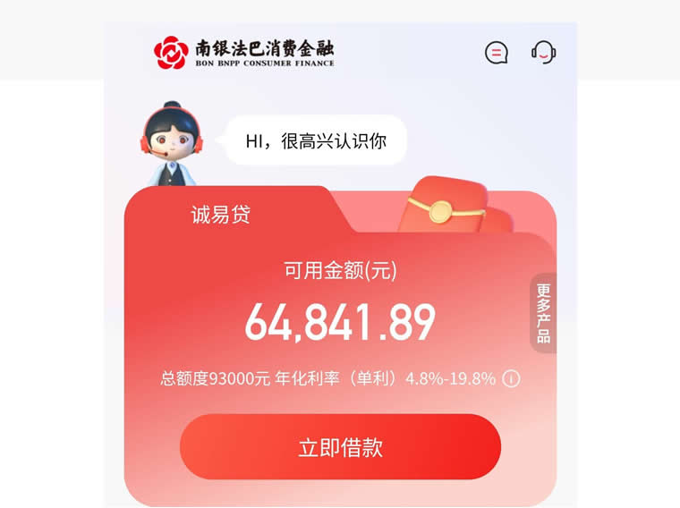 “诚易贷”是南银法巴(全称:南银法巴消费金融有限公司)为满足个人或家庭大额消费资金需求的纯信用消费贷款。