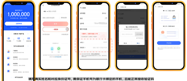 1、填写真实姓名和对应身份证号,需保证手机号为银行卡绑定的手机,且能正常接收验证码