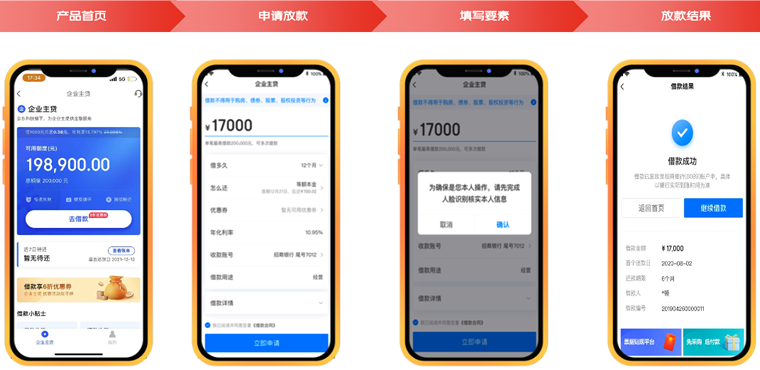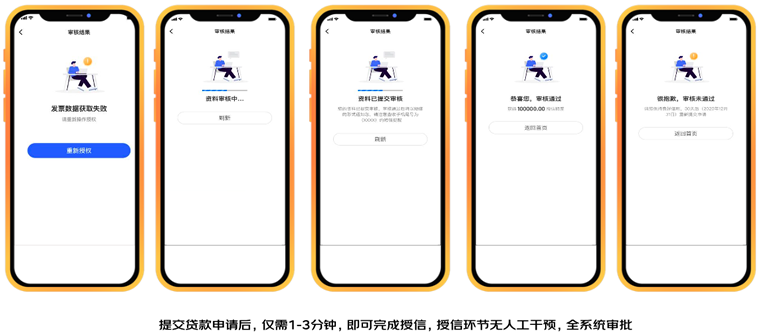 7、提交贷款申请后,仅需1-3分钟,即可完成授信,授信环节无人工干预,全系统审批。